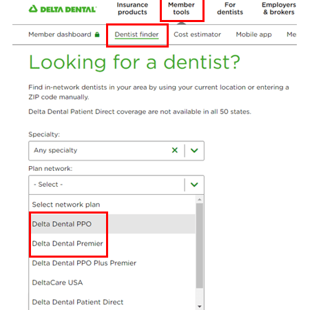 Delta Dental Provider Finder: www1.deltadentalins.com